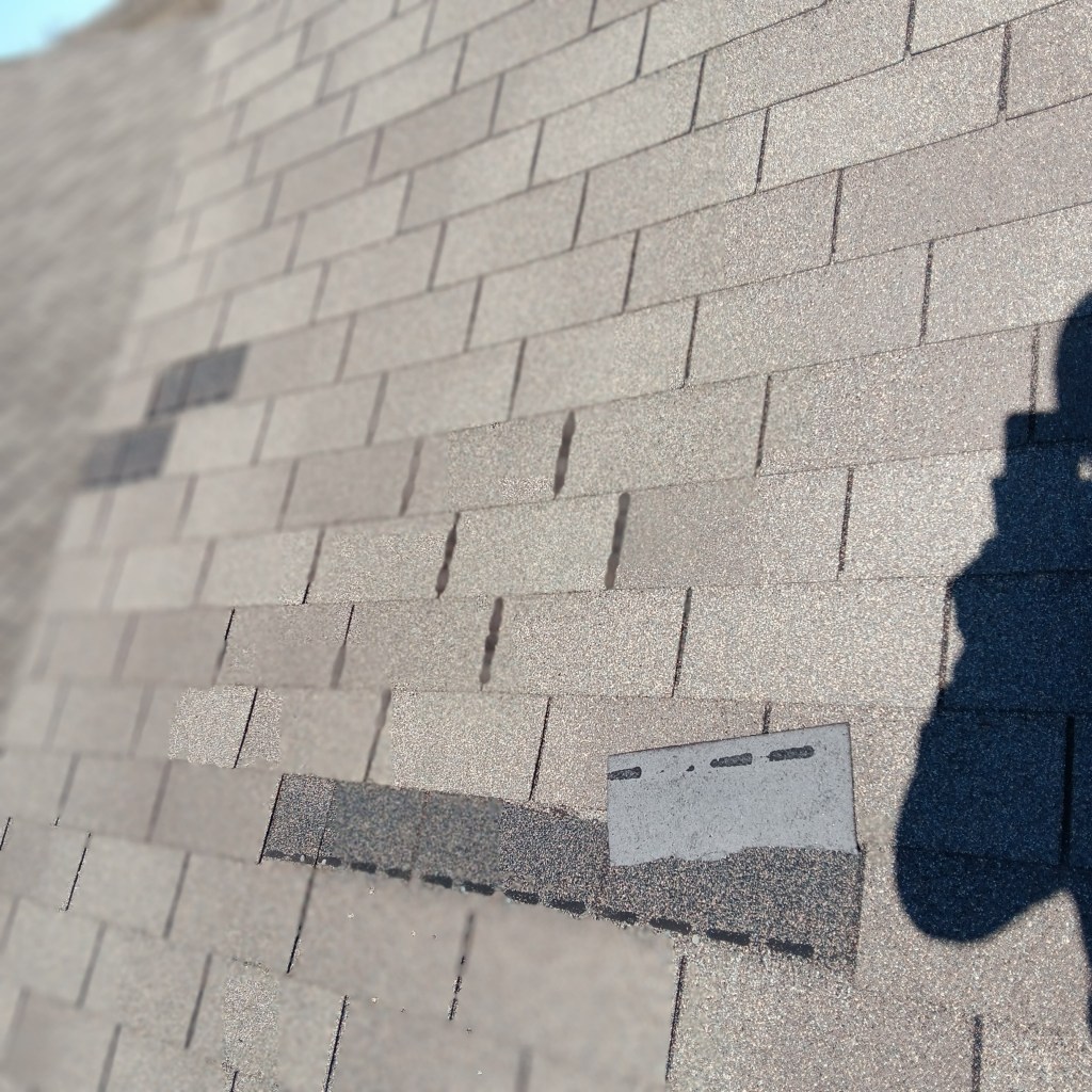 All damaged shingles are identified.